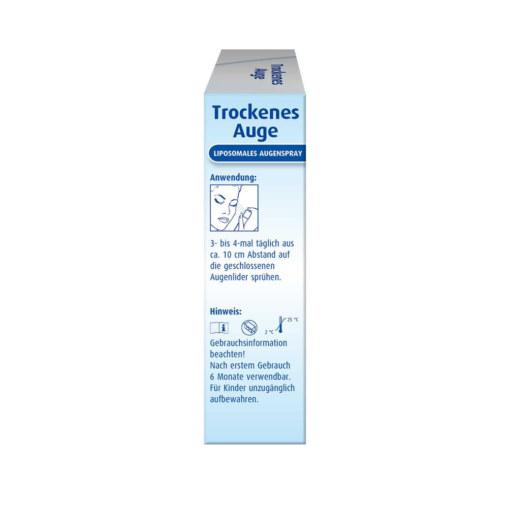 Mit dem Trockenes Auge Pumpspray können Sie Ihr Auge dabei unterstützen eine ausreichende Befeuchtung sicherzustellen. Das liposomale Augenspray basiert auf pflanzlichen Stoffen (Lecithin der Soja-Bohne) und lässt sich ganz leicht anwenden.