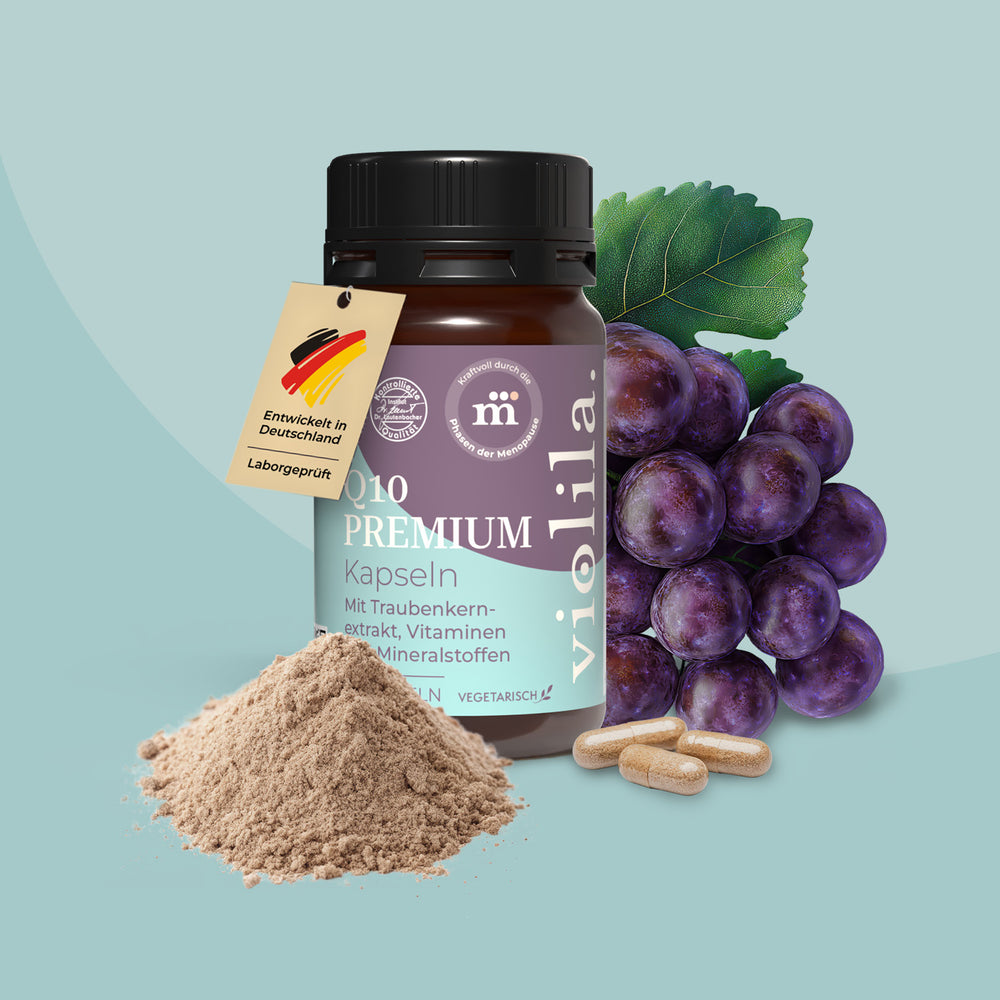 Q10 Premium Kapseln liefern eine Kombination aus Coenzym Q10, OPC-reichem Traubenkernextrakt sowie ausgewählten Vitaminen und Mineralstoffen.