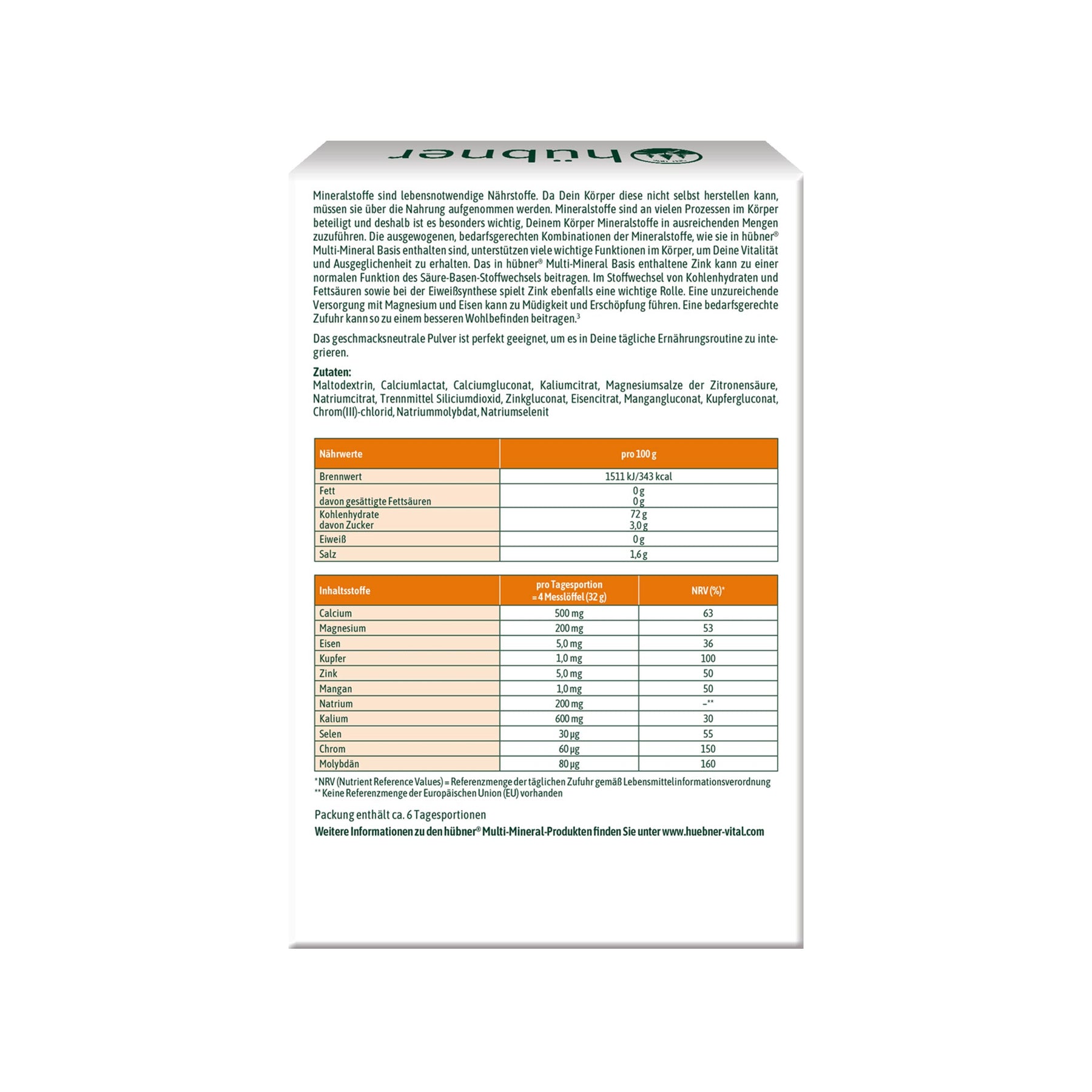 Mit hübner Multi-Mineral Basis sorgen Sie für eine ausgewogene, bedarfsgerechte Kombination an Spurenelementen und Mineralstoffen - für mehr Ausgeglichenheit und Vitalität.