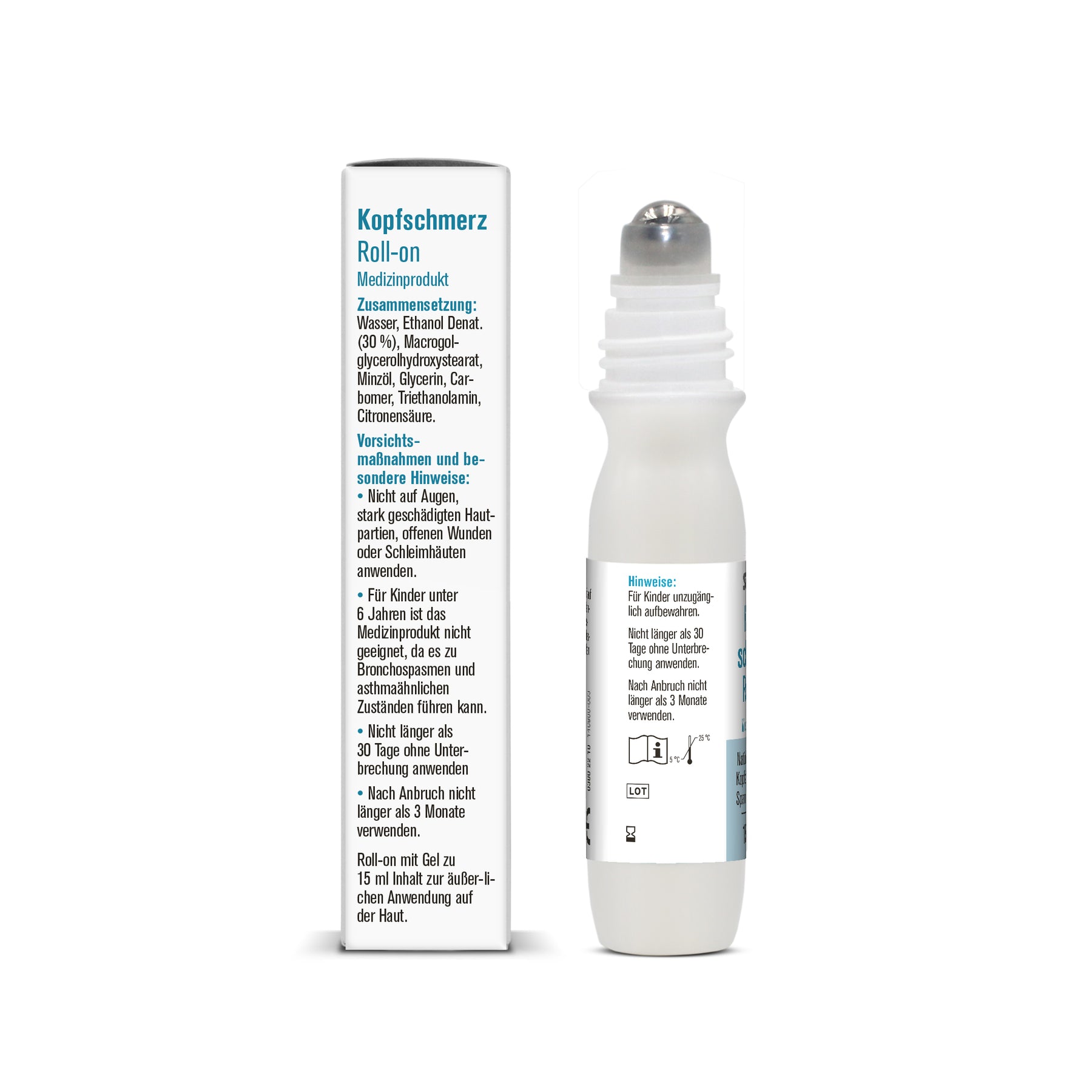 Anwendungsgebiete: Den Kopfschmerz Roll-on je nach Bedarf mehrmals täglich auf Schläfen-, Stirn- und Nackenbereich mit sanftem Druck anwenden. Tritt nach 2 Stunden keine Besserung der Beschwerden ein, sollten Sie die Anwendung abbrechen.