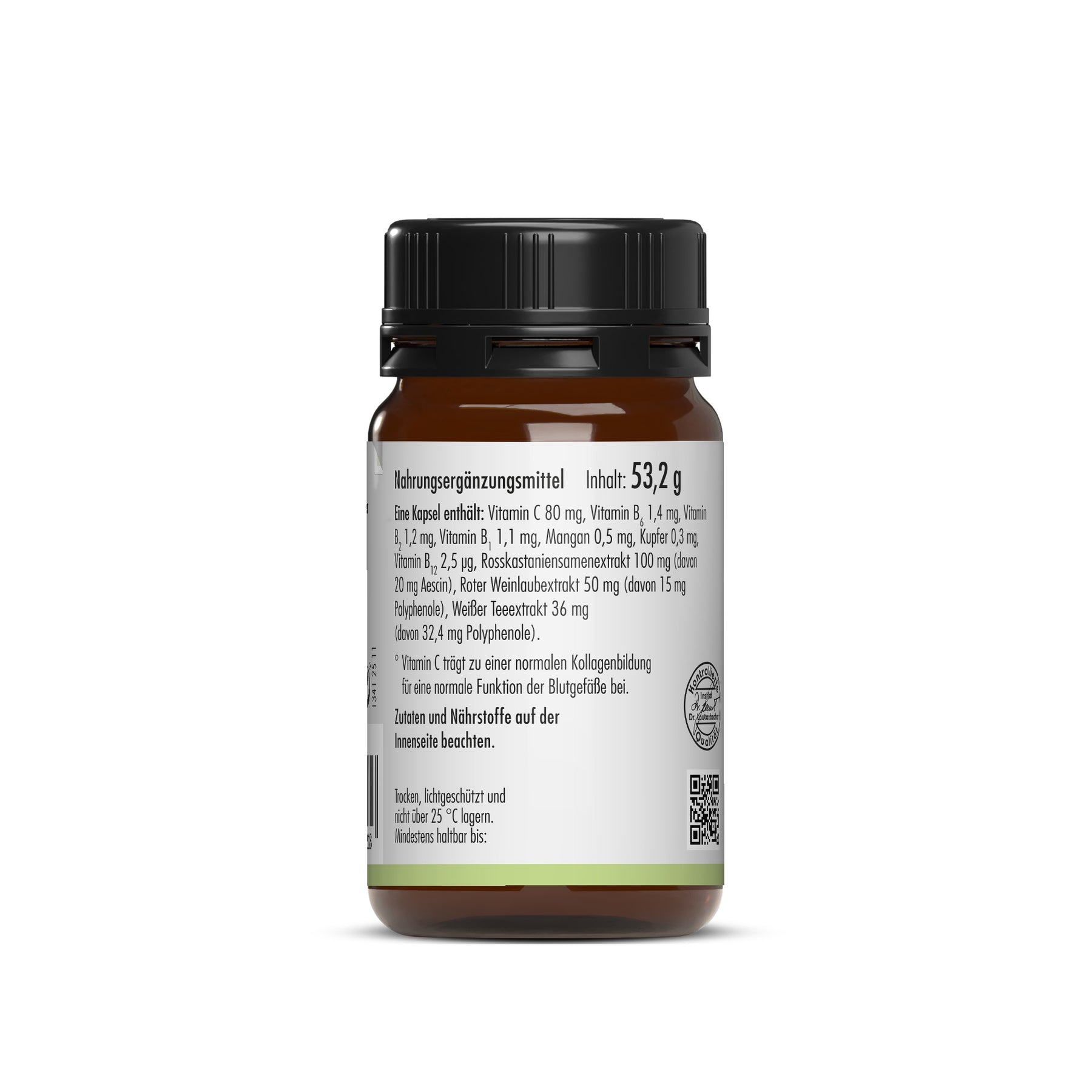 Die sorgfältig zusammengestellten sovita Venen Kapseln bieten eine einzigartige Kombination aus der Kraft der Natur und wissenschaftlich fundierten Inhaltsstoffen. Sie enthalten hochwertige Extrakte aus Rosskastaniensamen und Rotem Weinlaub, bekannt für ihre unterstützende Wirkung auf die Venenfunktion. Die pflanzliche Doppelkraft wird durch einen speziellen Extrakt aus weißem Tee ergänzt, der zum Schutz der Zellen beiträgt. Diese natürlichen Zutaten arbeiten Hand in Hand, um Ihre Venengesundheit optimal zu unterstützen.