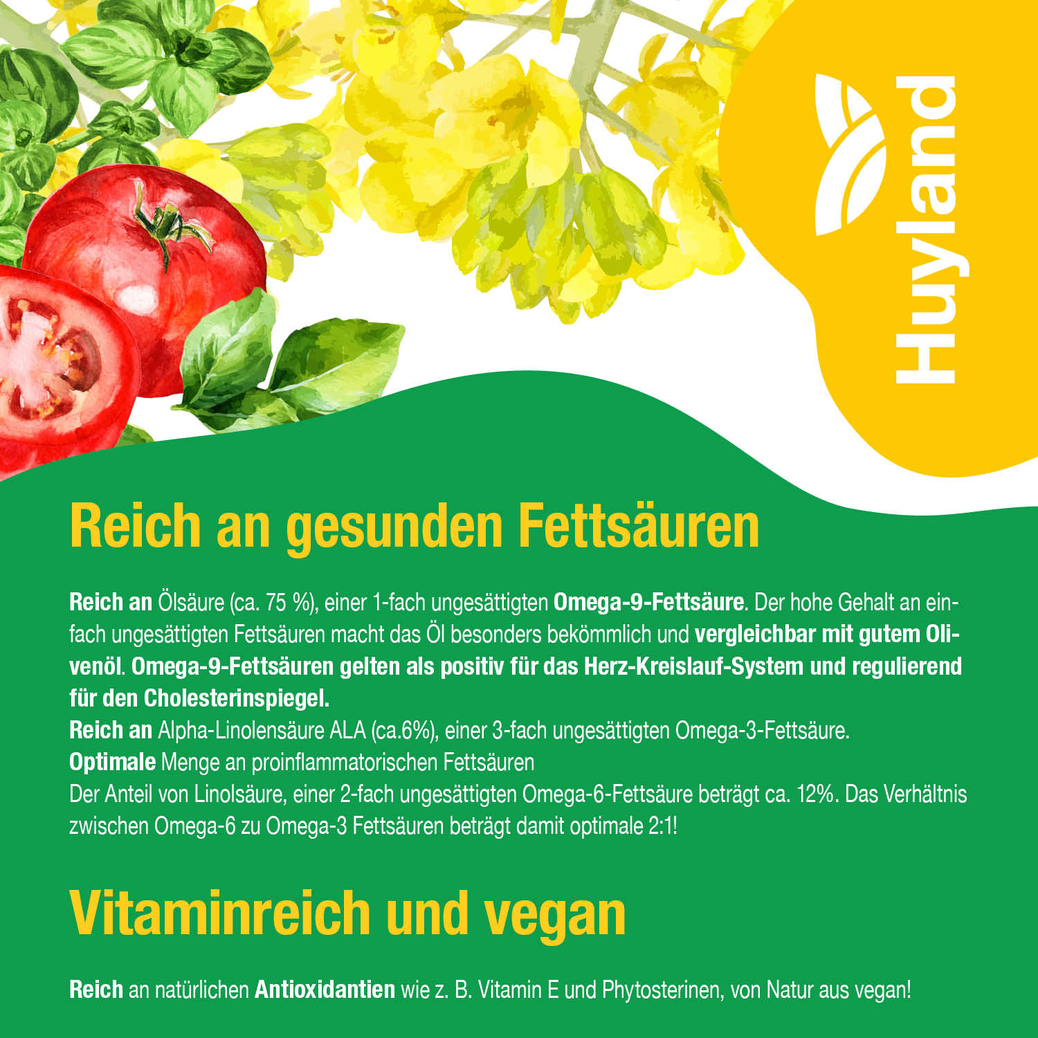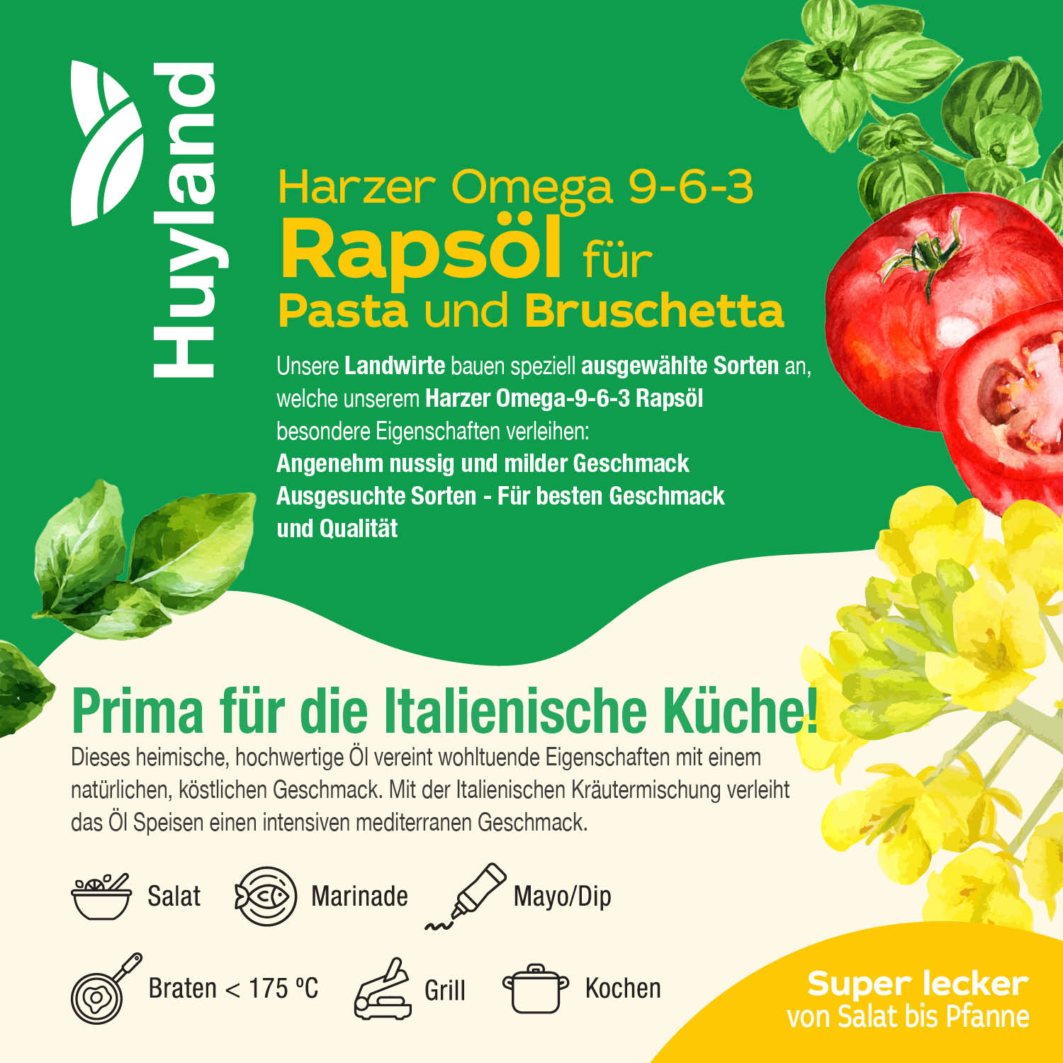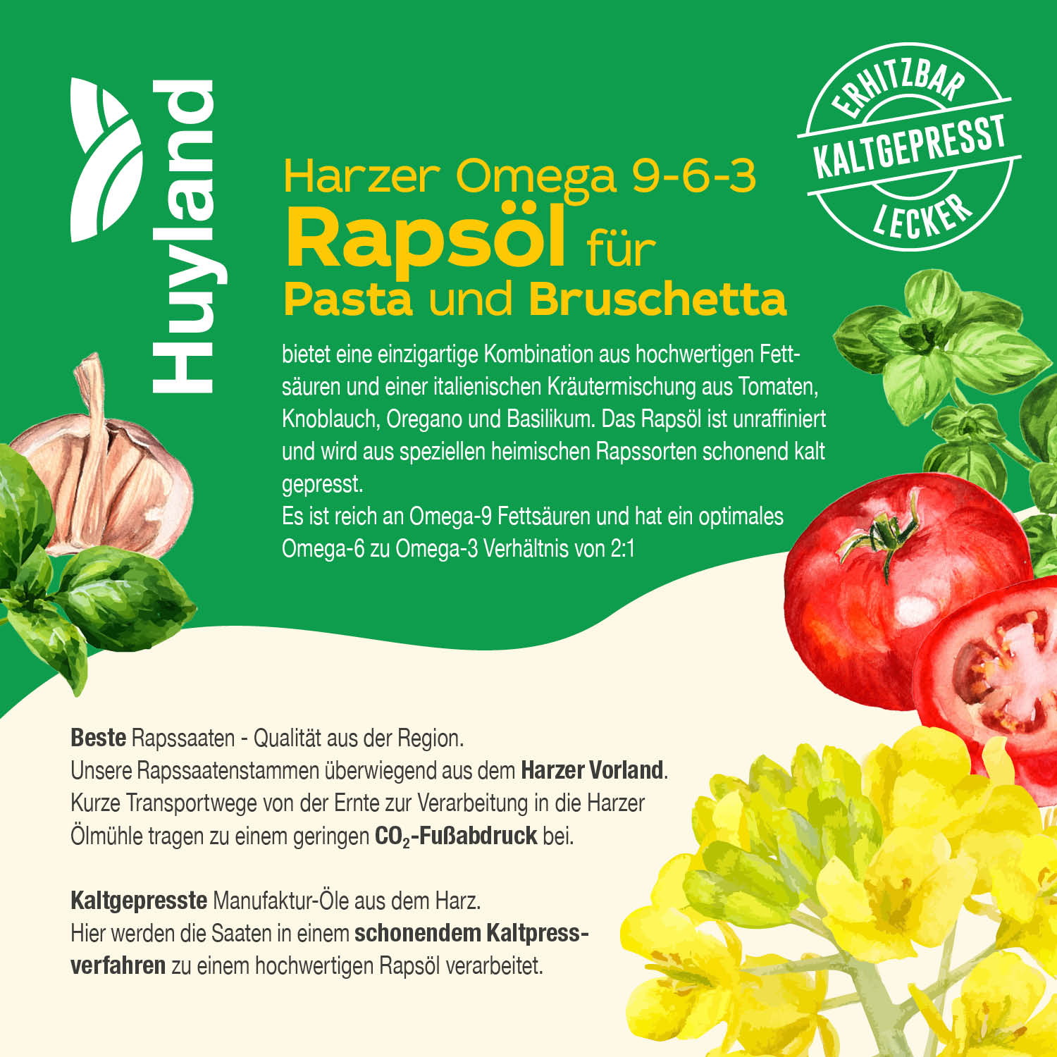 Huyland Harzer Rapsöl für Pasta und Bruschetta