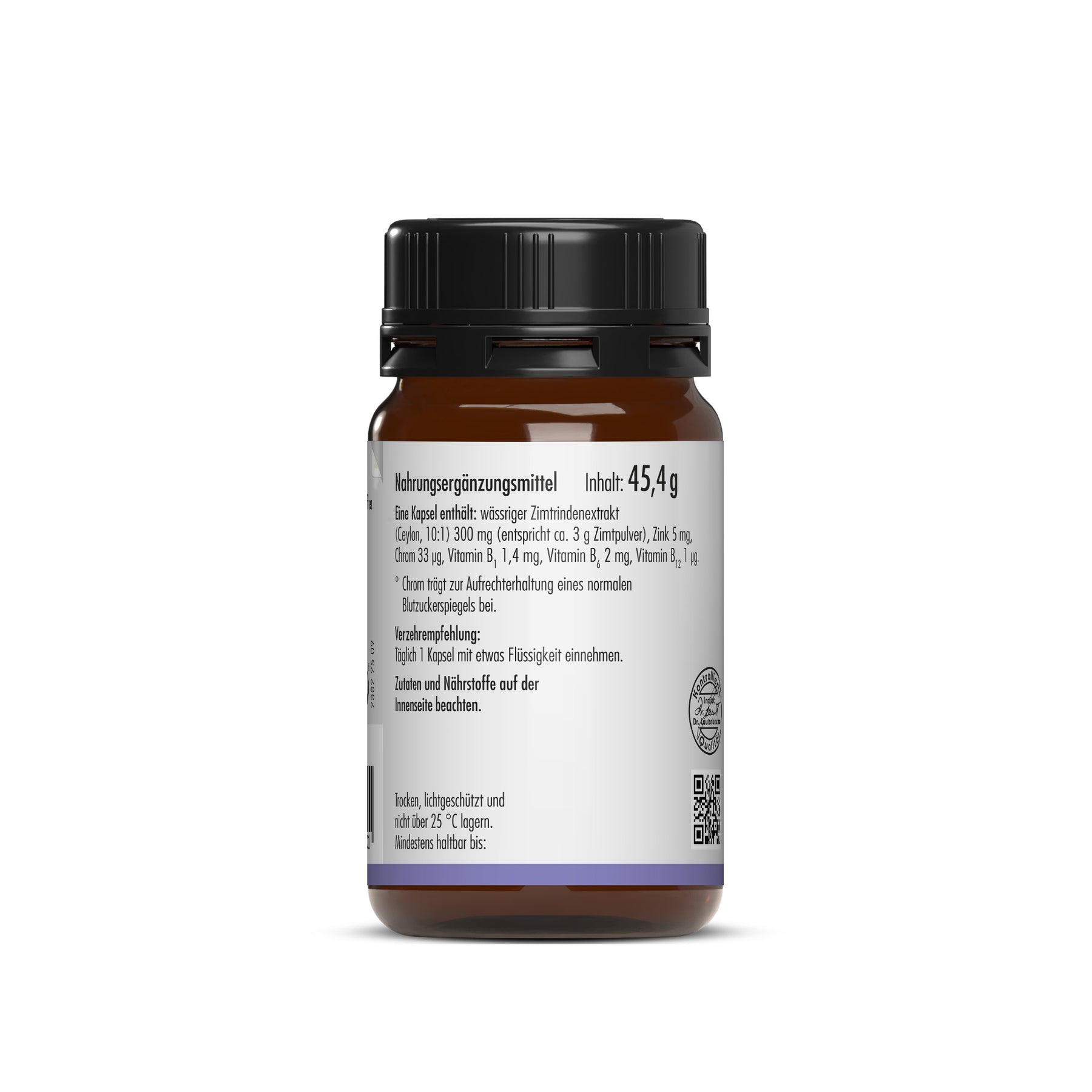 Zimtrindenextrakt (10:1); Überzugsmittel: Hydroxypropylmethylcellulose (pflanzliche Kapselhülle); Zinkbisglycinat; Vitamin B6 (Pyridoxinhydrochlorid); Vitamin B1 (Thiaminhydrochlorid); Chrompicolinat; Vitamin B12 (Methylcobalamin).