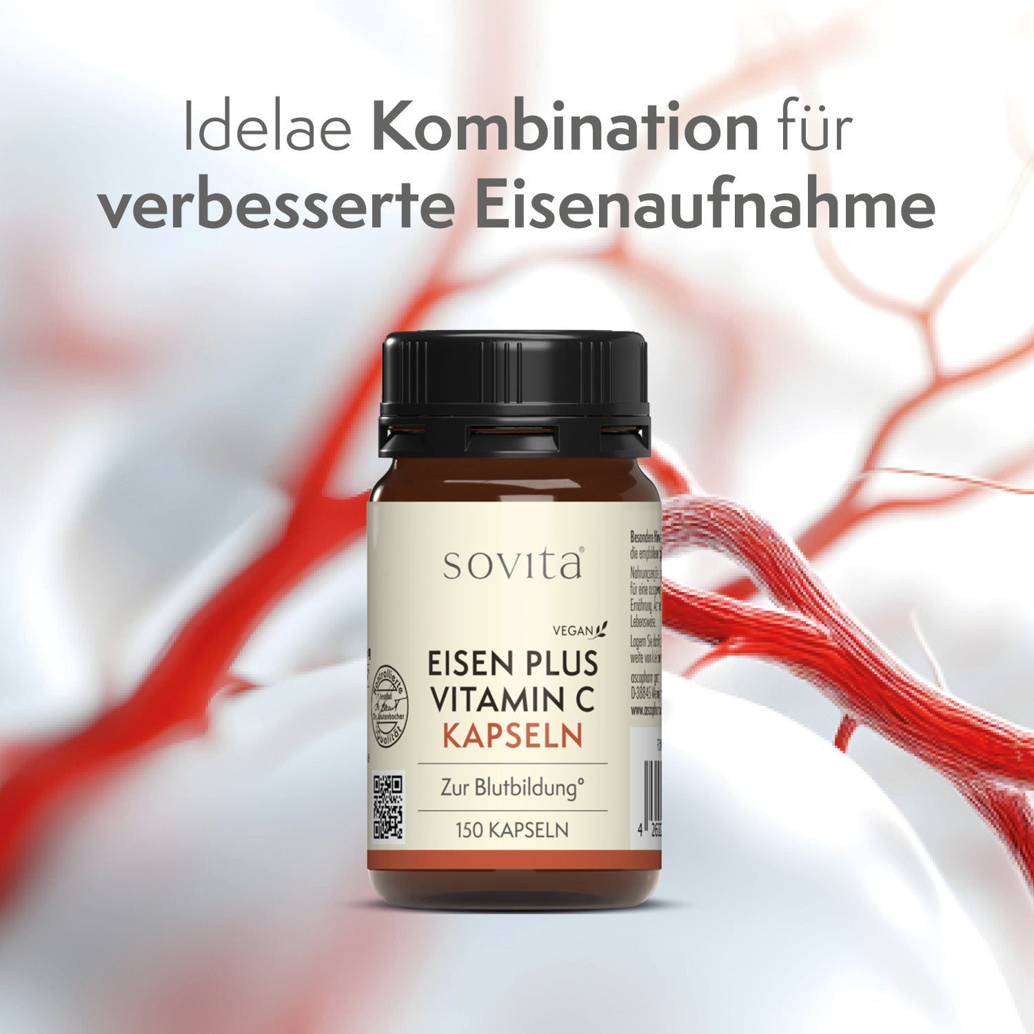 Synergistische Wirkung von Eisen und Vitamin C Die Kombination von Eisen mit Vitamin C ist besonders effektiv, da Vitamin C die Eisenaufnahme erhöht. Dies ermöglicht Ihrem Körper, das Eisen optimal zu verwerten und unterstützt gleichzeitig Ihr Immunsystem.