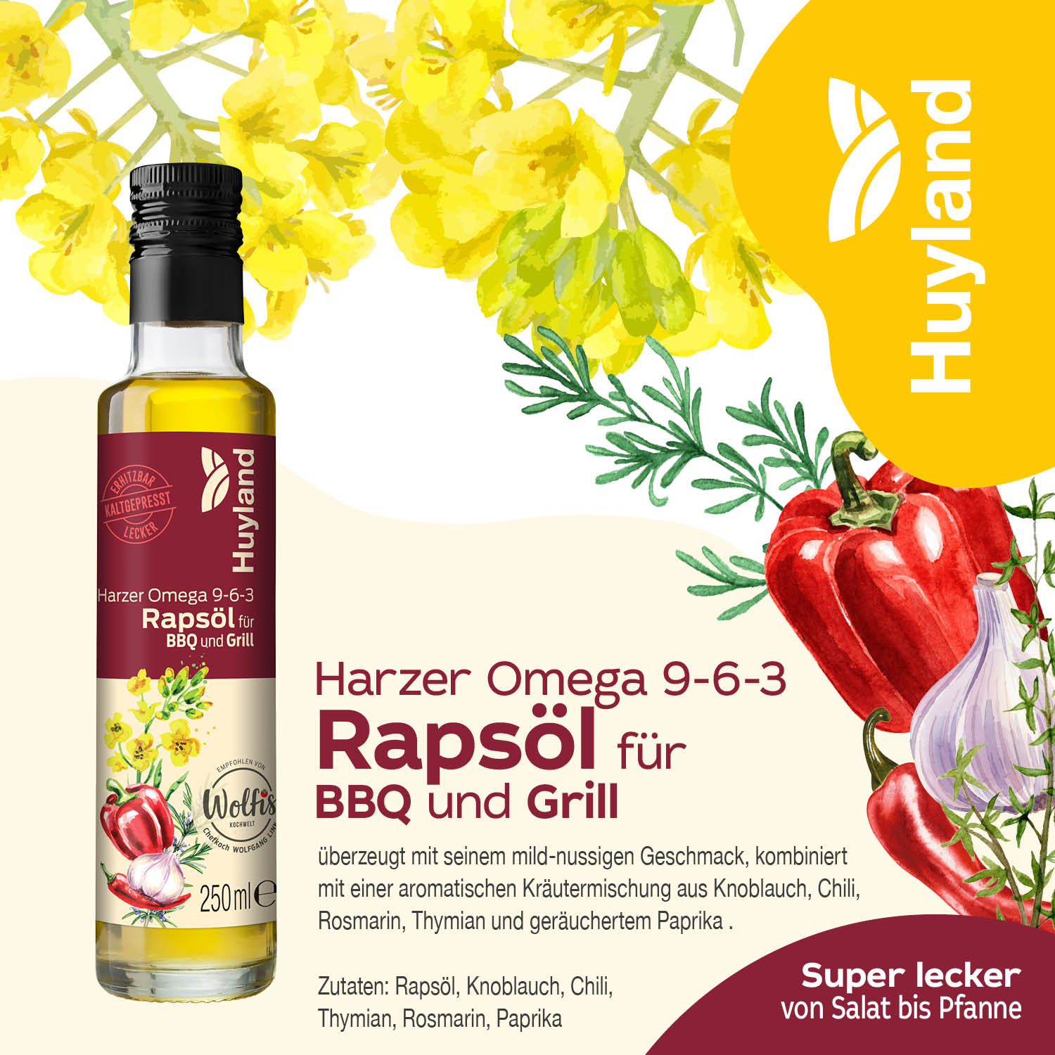 Huyland Harzer Rapsöl für BBQ und Grill