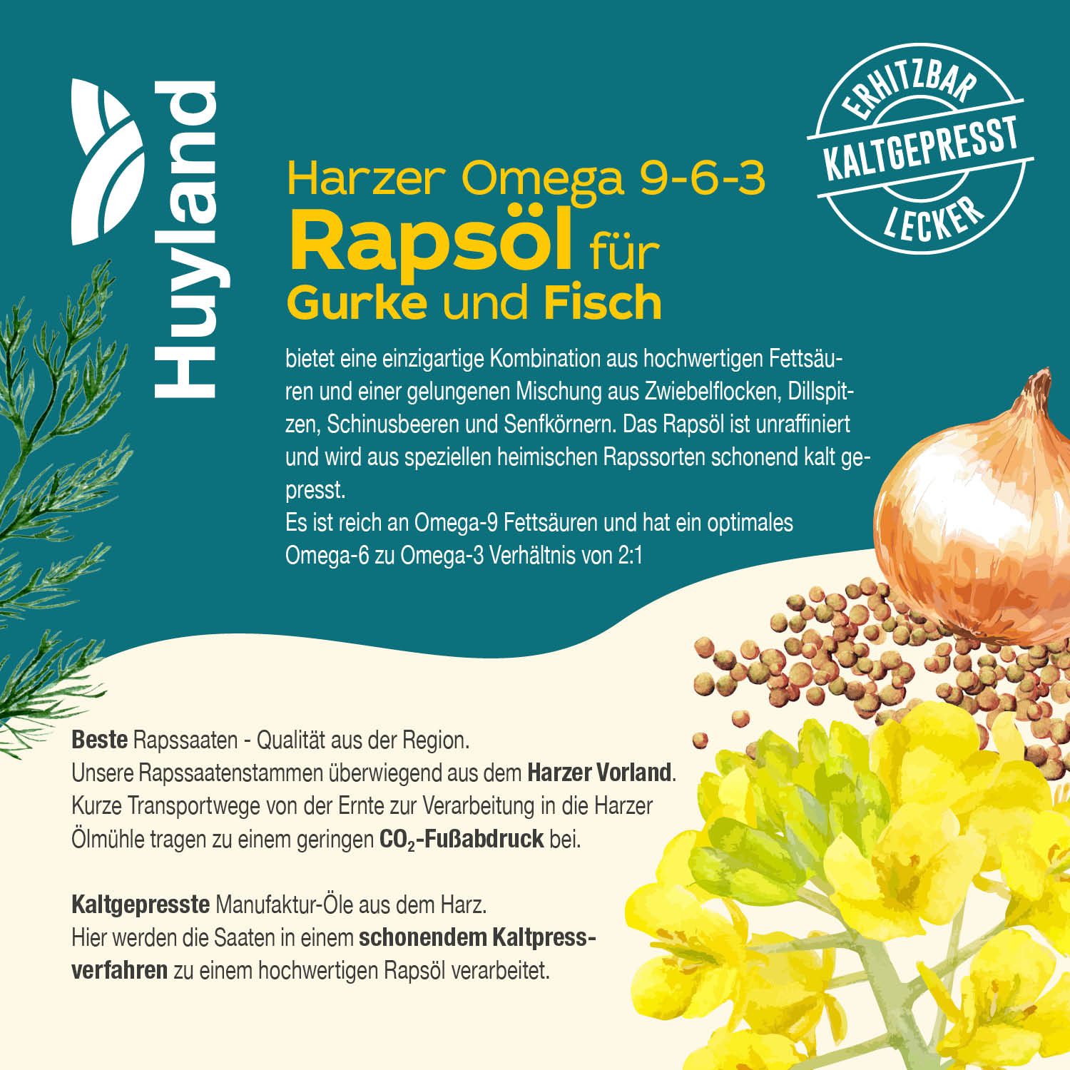 Huyland Harzer Rapsöl für Gurke und Fisch