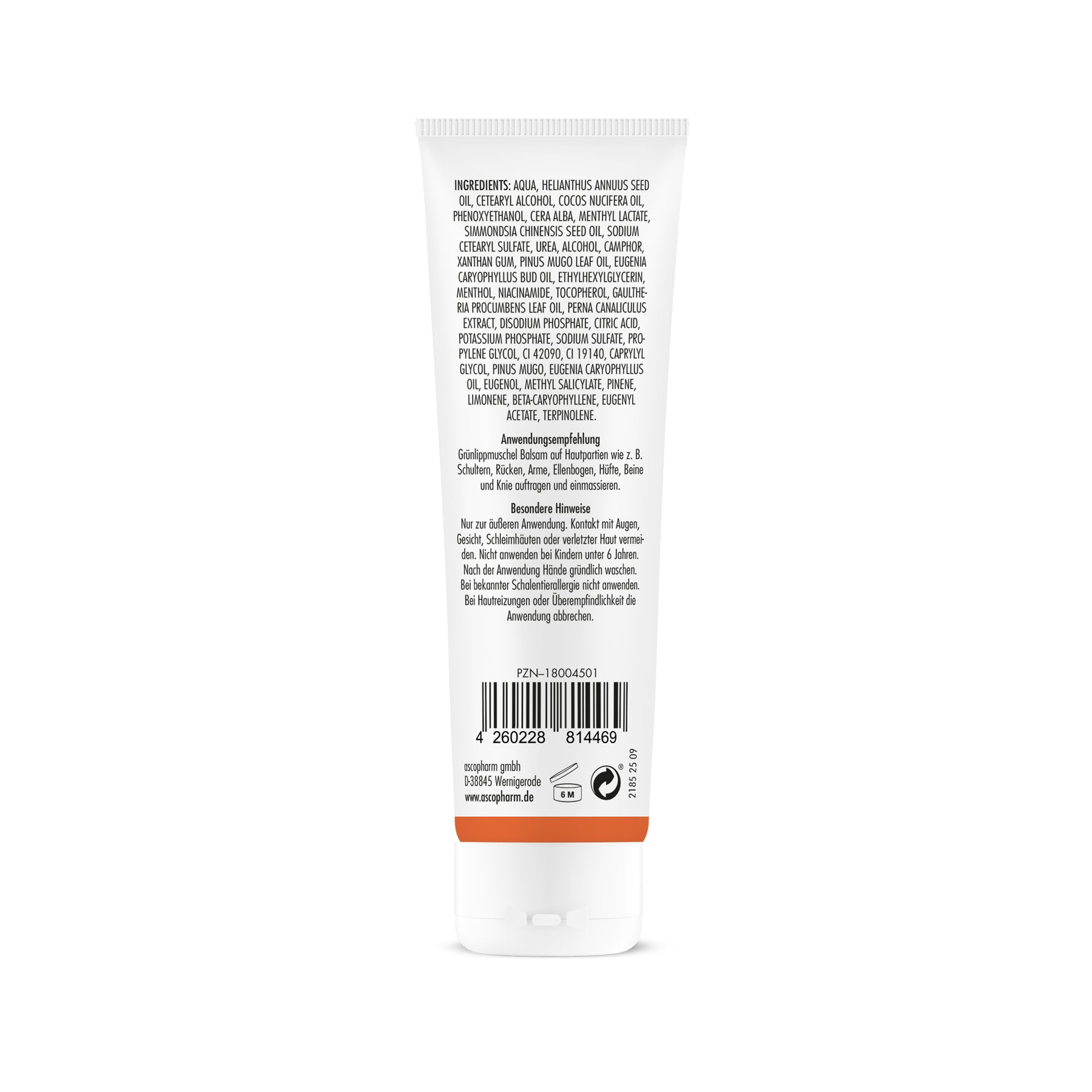 Der Grünlippmuschel Balsam ist eine pflegende und angenehm einziehende Creme mit einem Komplex aus Grünlippmuschelextrakt, ätherischen Ölen und bewährten kosmetischen Inhaltsstoffen. Die Rezeptur eignet sich besonders zur Pflege beanspruchter Hautpartien – etwa im Bereich von Schultern, Rücken, Armen, Knien oder Hüfte.