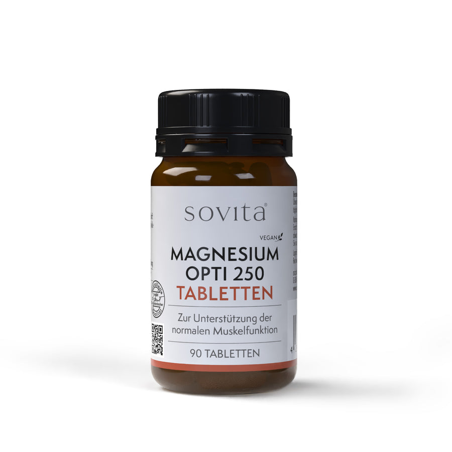 Magnesium ist ein essenzieller Mineralstoff, der an zahlreichen Stoffwechselprozessen beteiligt ist. Besonders für die normale Muskelfunktion und das Nervensystem spielt Magnesium eine wichtige Rolle. sovita Magnesium Opti 250 Tabletten liefern hochwertiges Magnesium in einer praktischen Dosierung