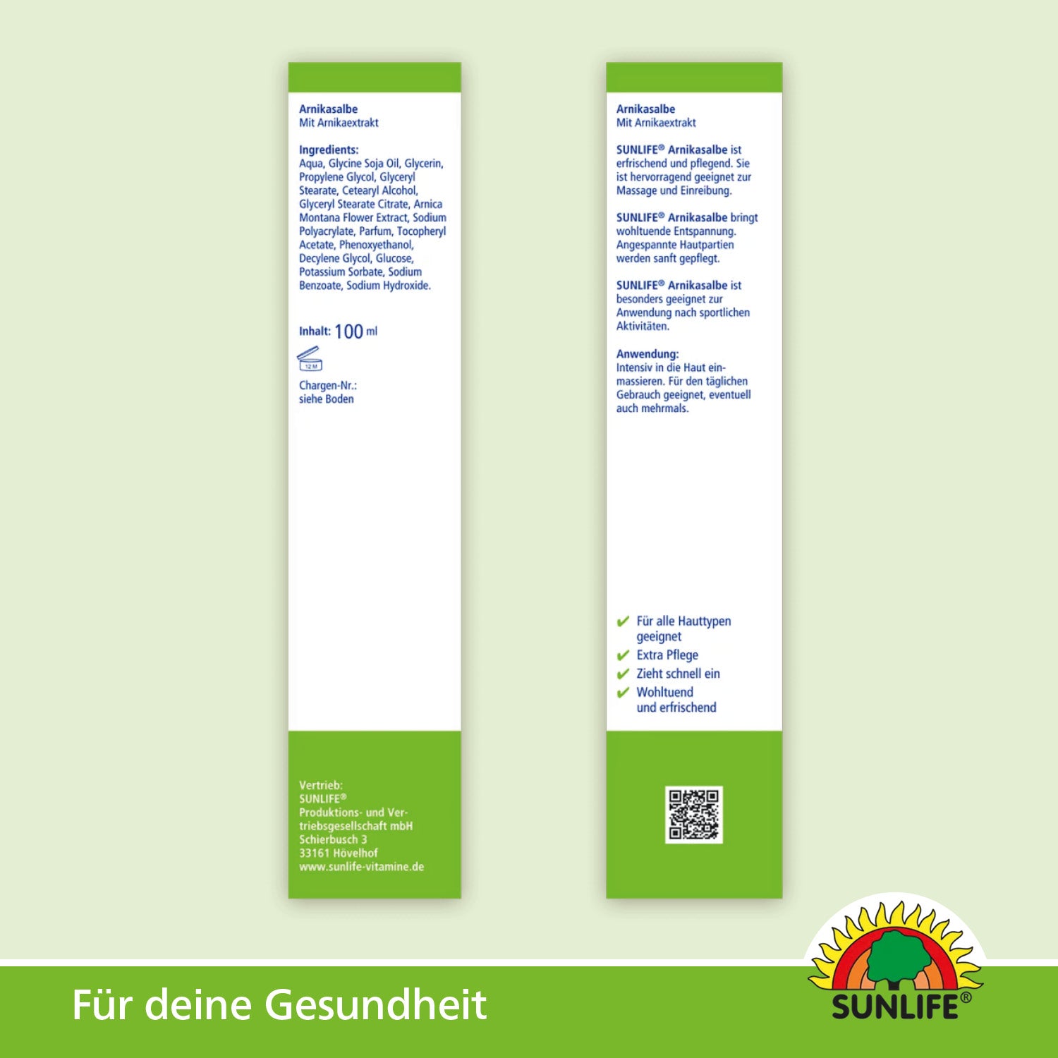 SUNLIFE® Arnikasalbe ist erfrischend und pflegend. Sie ist hervorragend geeignet zur Massage und Einreibung.